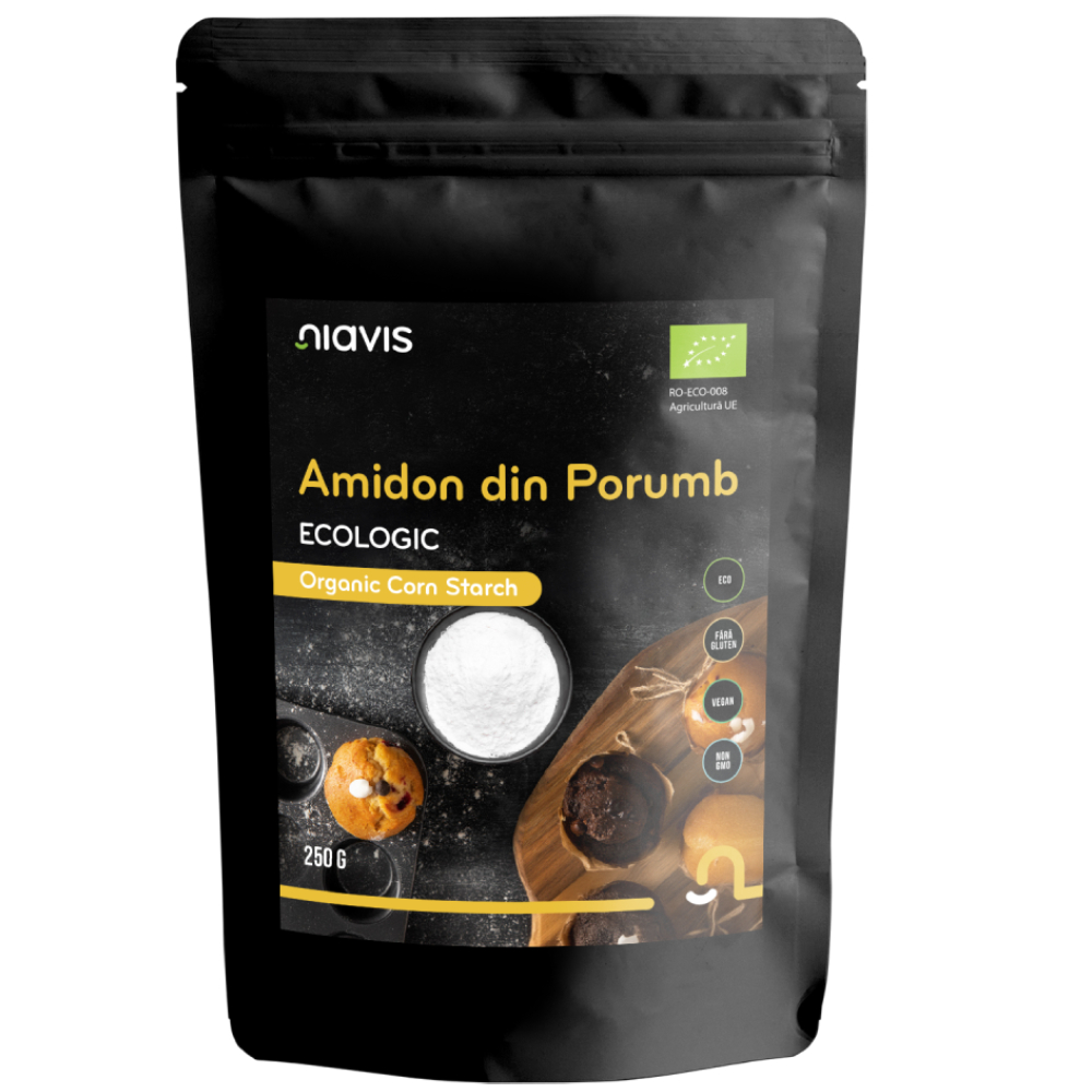 Amidonul de porumb Ecologic/Bio de la Niavis este un ingredient esential in orice bucatarie, oferind versatilitate si beneficii multiple pentru gatit si copt.