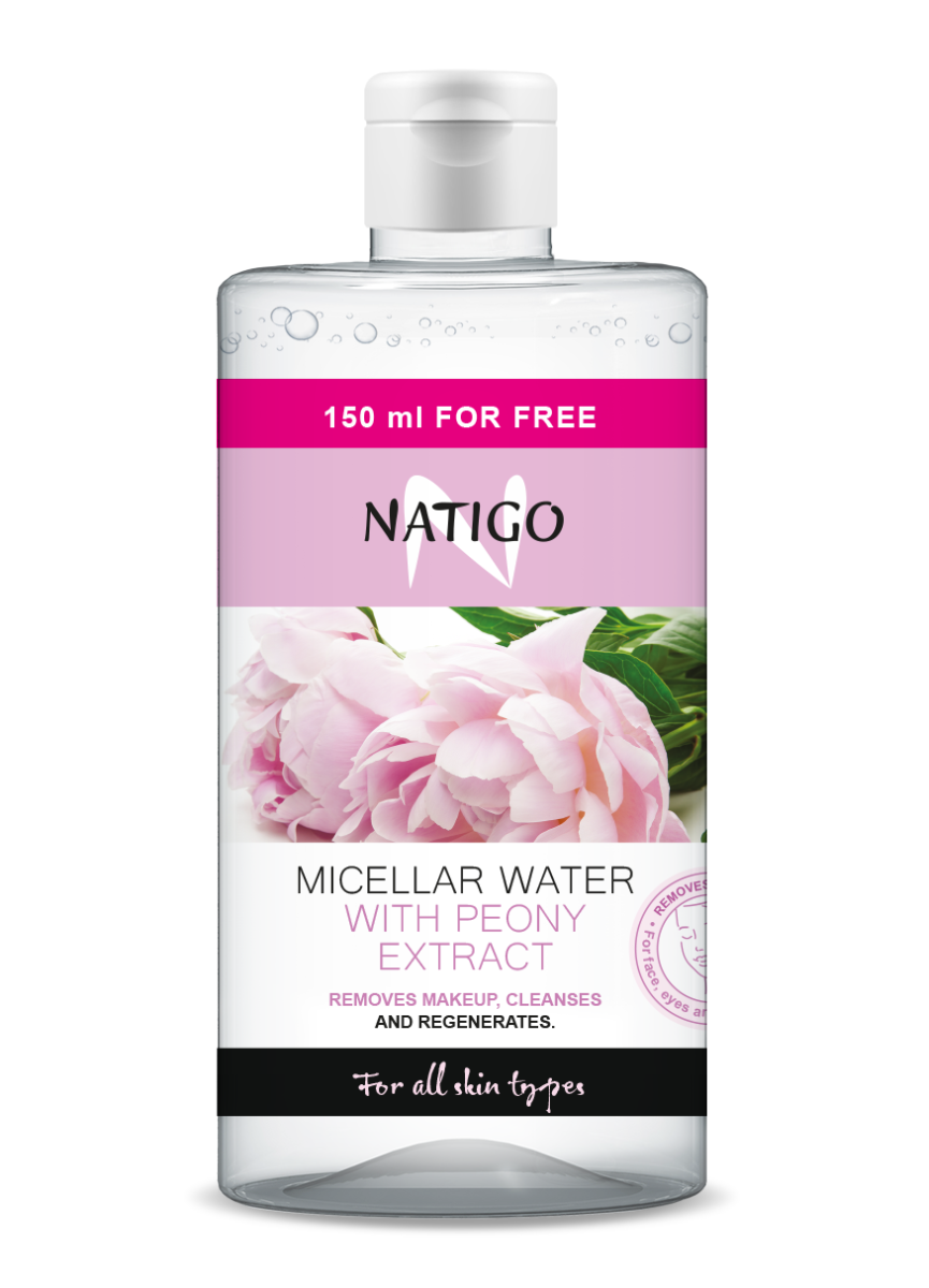 Apa micelara cu extract de bujor Natigo curata delicat tenul, indeparteaza machiajul si impuritatile, oferind hidratare si calmare tenului.