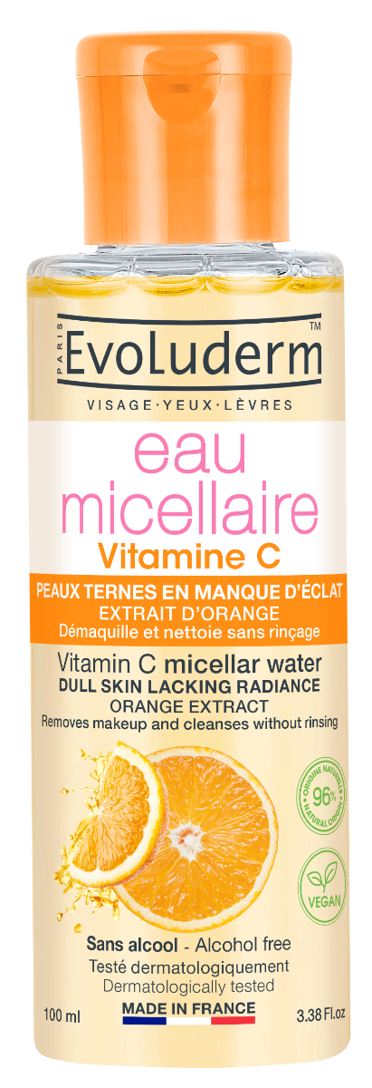 Continand 96% ingrediente de origine naturala, Evoluderm apa micelara cu vitamina C dezvaluie stralucirea naturala a pielii pentru a lasa tenul proaspat si luminos.