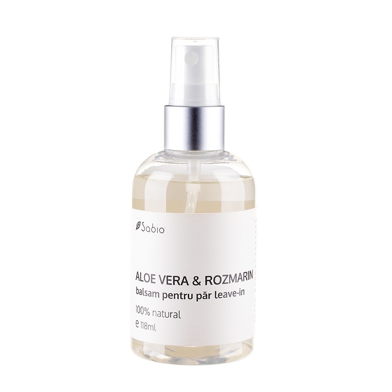 Balsam pentru par cu Aloe Vera si Rozmarin, Leave-in Sabio cu formula naturala bifazica fara clatire, hidrateaza, fortifica si protejeaza parul, oferindu-i stralucire si vitalitate.