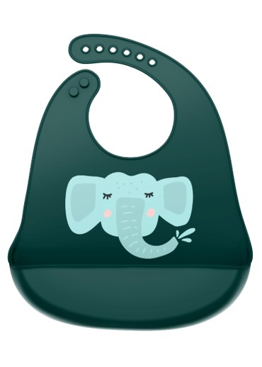 Bavetica pentru copii din silicon cu model imprimat de elefant.