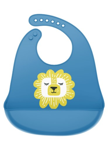 Bavetica pentru copii din silicon moale cu buzunar, cu model imprimat de leu.