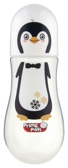 Biberon polipropilena 275 ml decorat pinguin-tigru-maimuta-pui cu tetina silicon 0-3 luni.
