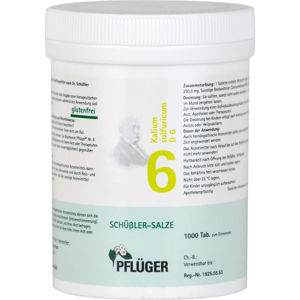 06319300: Homöopathisches Laboratorium Alexander Pflüger GmbH & Co. KG - Biochemie Pflüger 6 Kalium sulfuricum D 6 Tabl. 1000 St