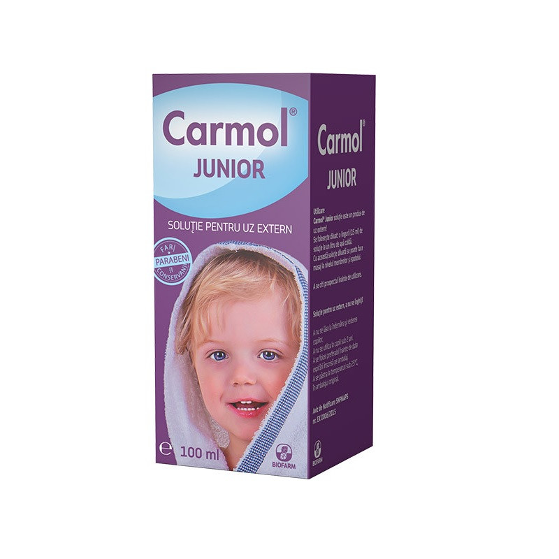 Acest produs Biofarm Carmol Junior Solutie pentru uz extern, 100 ml din categoria Raceala si Gripa > Febra si Durere se poate comanda online la un pret redus.