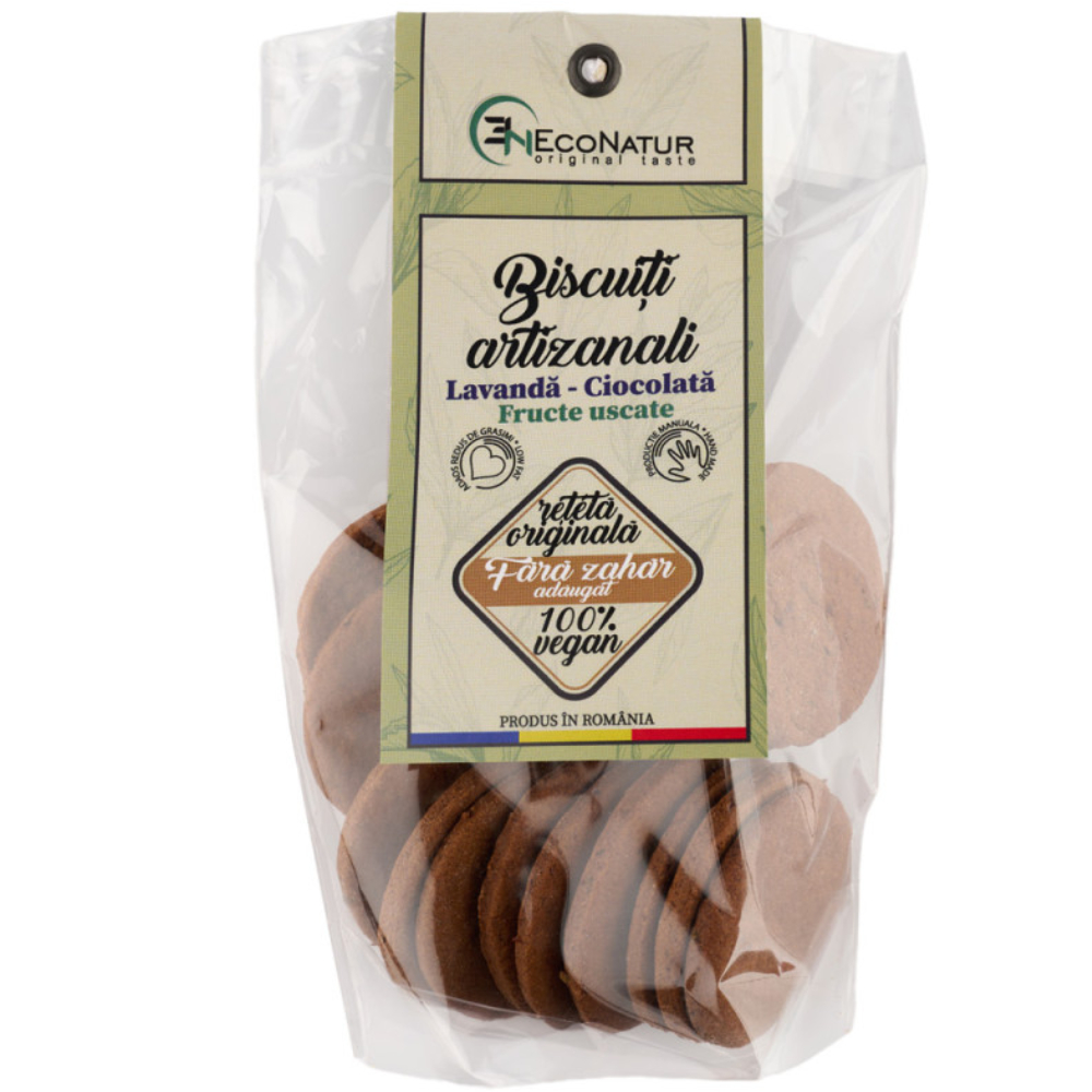 Acest produs Biscuiti artizanali cu lavanda si ciocolata fara zahar, 150g, EcoNatur din categoria Dieta si nutritie se poate comanda online la un pret redus.