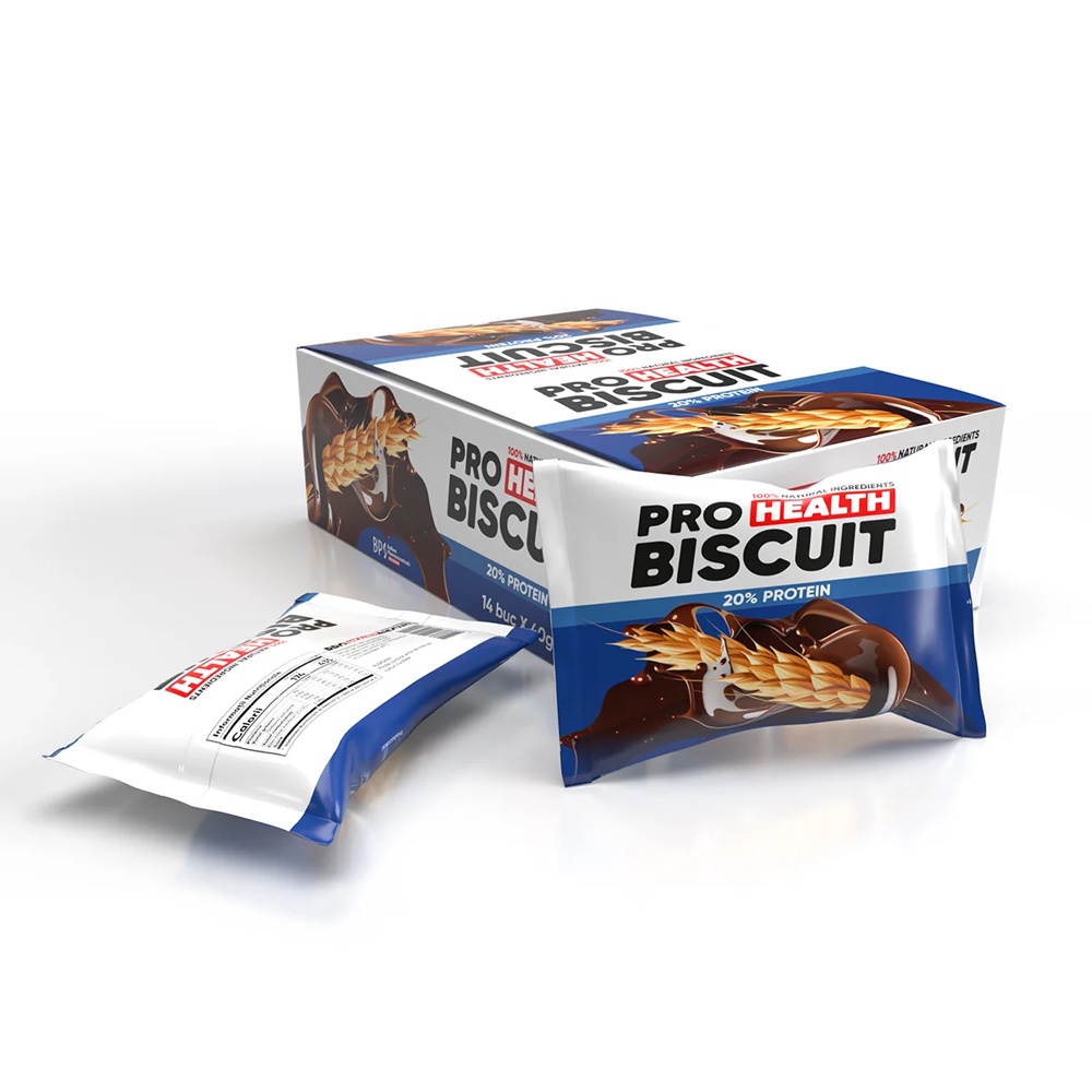 Biscuiți Proteici ProHealth, Balkan Pharmaceuticals Biscuiții Proteici ProHealth sunt o gustare delicioasă și sănătoasă, concepută pentru a sprijini obiectivele tale nutriționale și de fitness. Aceștia sunt ideali pentru persoanele care doresc să îmbunătățească aportul de proteine și fibre, să susțină creșterea masei musculare sau să îmbunătățească digestia, în timp ce se bucură de o gustare savuroasă. Beneficii: Susțin creșterea și menținerea masei musculare : Fiecare biscuit conține 8 g de proteine de înaltă calitate provenite din zer și colagen hidrolizat, esențiale pentru recuperare, menținerea și creșterea masei musculare. Ajută digestia și oferă sațietate : Conținutul de 5,6 g de fibre per biscuit contribuie la o digestie mai bună și menține senzația de sațietate. Conținut scăzut de calorii : Cu doar 174 kcal per porție, acești biscuiți sunt o opțiune excelentă pentru gustările dintre mese sau ca parte a unei mese echilibrate. Ingrediente naturale : Fabricat cu ingrediente naturale, fără arome artificiale, conservanți sau coloranți. Ingrediente: Făină din grâu c/s Proteine din zer (proteine din zer de lapte, lecitină de floarea soarelui) Miere naturală Ulei de cocos rafinat, înălbit și dezodorizat Pudră de zahăr Apă potabilă Colagen tip I și III hidrolizat (de origine bovină) Pudră de cacao Agenți de afânare : carbonați de amoniu, carbonați de sodiu Sare alimentară Esență cu aromă de miere Emulsifiant lecitină Vanilină Ambalaj: Ambalaj individual : O cutie conține 12 bucăți de biscuiți. Porție : 1 biscuit = 40 g Recomandări: Consum : A se consuma înainte de data înscrisă pe ambalaj. Păstrare : A se păstra la loc uscat, protejat de lumină și la temperaturi ce nu depășesc 20°C. Biscuiții Proteici ProHealth sunt soluția perfectă pentru cei care doresc să îmbine gustul plăcut cu beneficii nutriționale excelente. Ideal pentru gustările dintre mese, aceștia susțin obiectivele tale de sănătate și fitness, oferind în același timp o experiență culinară plăcută.