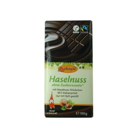 Ciocolata neagra cu alune fara adaos de zahar 55% cacao, 100g, Birkengold