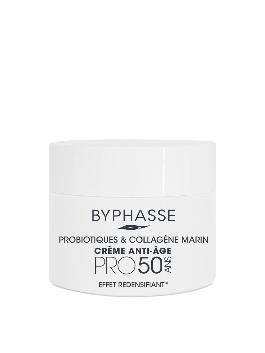 Crema anti-imbatranire Byphasse Pro50 cu probiotice si colagen marin redensifica si tonifica pielea, imbunatatind elasticitatea si reducand vizibil ridurile, pentru un ten ferm si luminos.