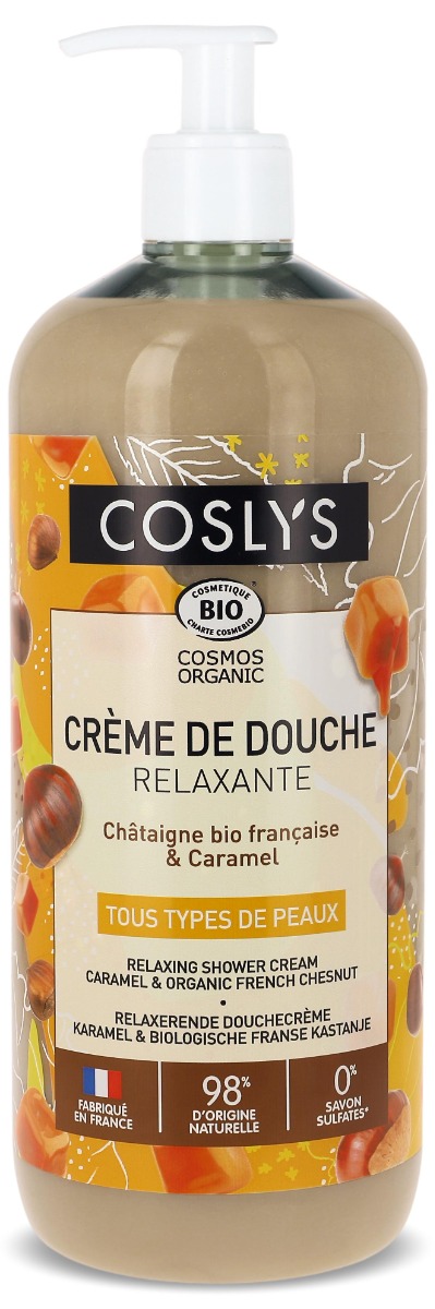 Crema de dus bio relaxanta cu Castane si Caramel, Coslys curata delicat pielea si ofera o senzatie de relaxare datorita parfumului gurmand, fiind potrivita pentru toate tipurile de piele.
