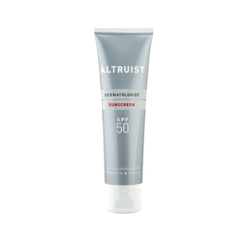 Crema hipoalergenica protectie solara Dermatologist Sunscreen SPF50- protectie UVA si UVB cu spectru larg.Emulsia hidratanta a cremei Altruist SPF50 are concentratii optime de filtre solare pentru a evita orice reactive adversa. Contine o gama larga de filtre UV fotostabile si fotostabilizate, inclusiv cel mai avansat disponibil Tinosorb A2B si filtrul mineral sub forma de nano particule, dioxid de titan, asigura eficienta protectiei pe intreg spectrul UVA/UVB.