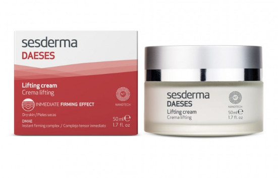Crema lifting Daeses Sesderma Daeses Lifting Cream este o cremă cosmetică dedicată liftingului fetei, care functionează pentru a imbunătăti nivelul de fermitate al pielii si este potrivită pentru pielea uscată. Linia Daeses include ingredientul revolutionar DMAE (dimetilaminoetanol) incapsulat in lipozomi, ceea ce face pielea mai fermă, mai elastică si mai fină. Această cremă cu actiune antirid si lifting, recomandată tenului matur, imbunătăteste vizibil tensiunea si elasticitatea pielii. Elimină lăsarea pielii care apare ca urmare a imbătranirii, pierderii in greutate sau expunerii excesive la soare. Prezentare: 50ml