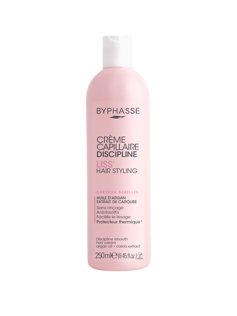 Crema Byphasse Discipline cu ulei de argan si extract de roscov faciliteaza netezirea si indreptarea parului rebel, protejandu-l impotriva caldurii uscatorului si a placii de indreptat.