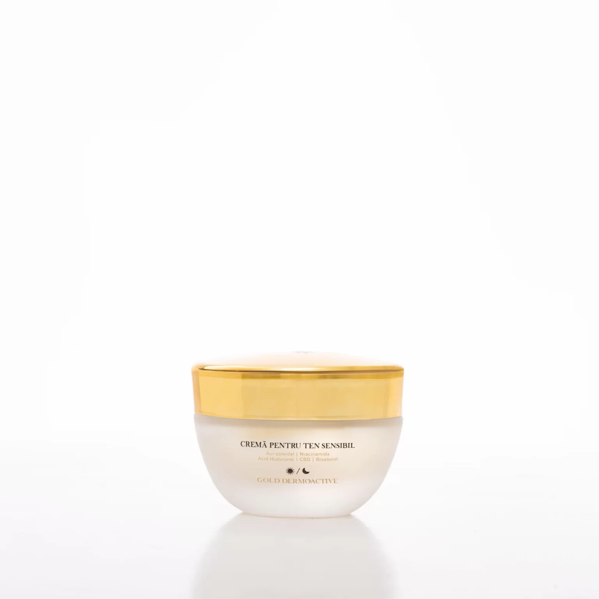 Crema pentru ten sensibil Gold Dermoactive Lotus Cosmetics calmeaza iritatiile, reduce roseata si hidrateaza profund cu ingrediente active.