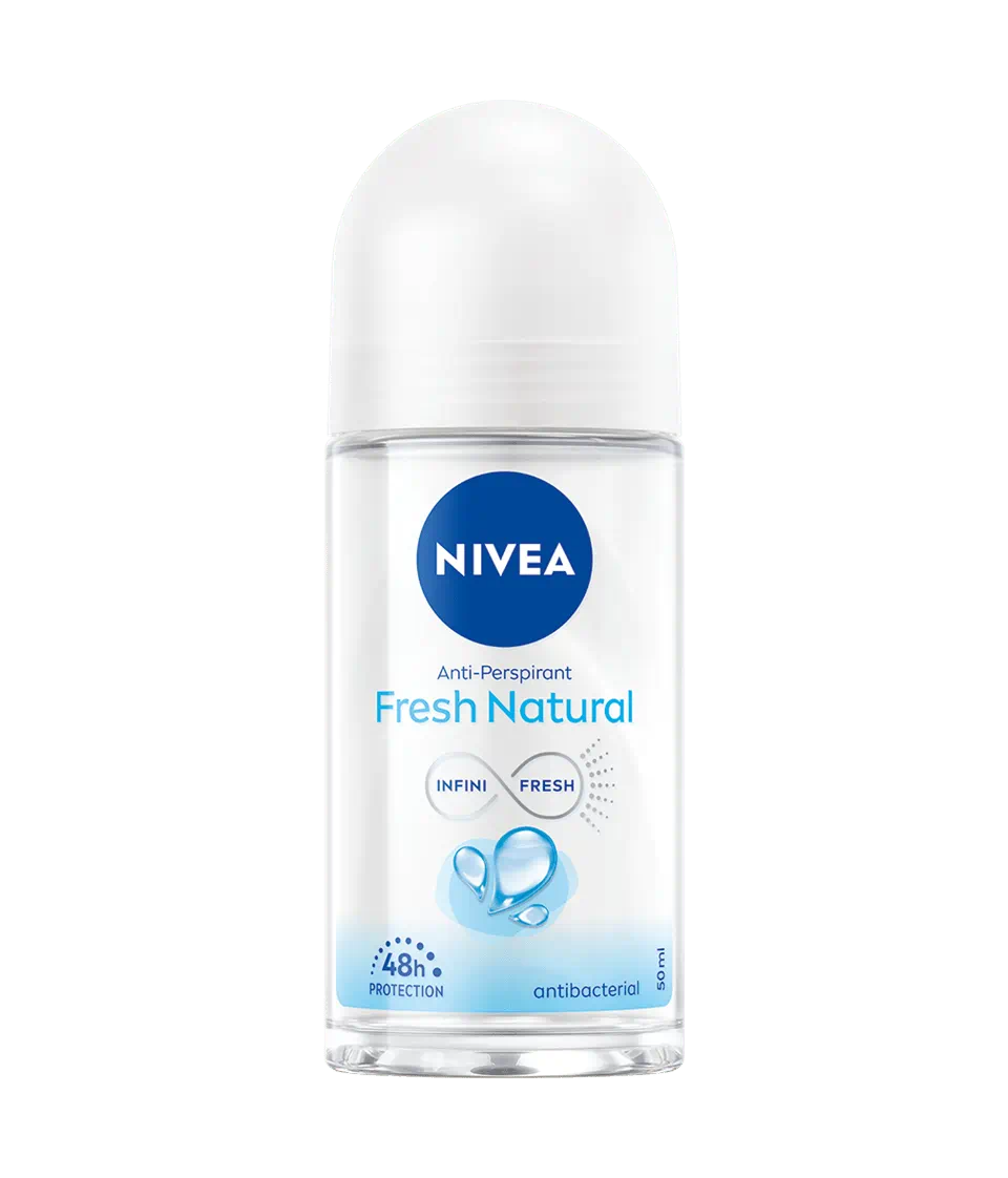 Nivea Fresh Natural roll-on ofera 48h protectie, neutralizeaza bacteriile cu tehnologia Infinifresh si lasa pielea fresh cu parfum oceanic, fara iritatii.