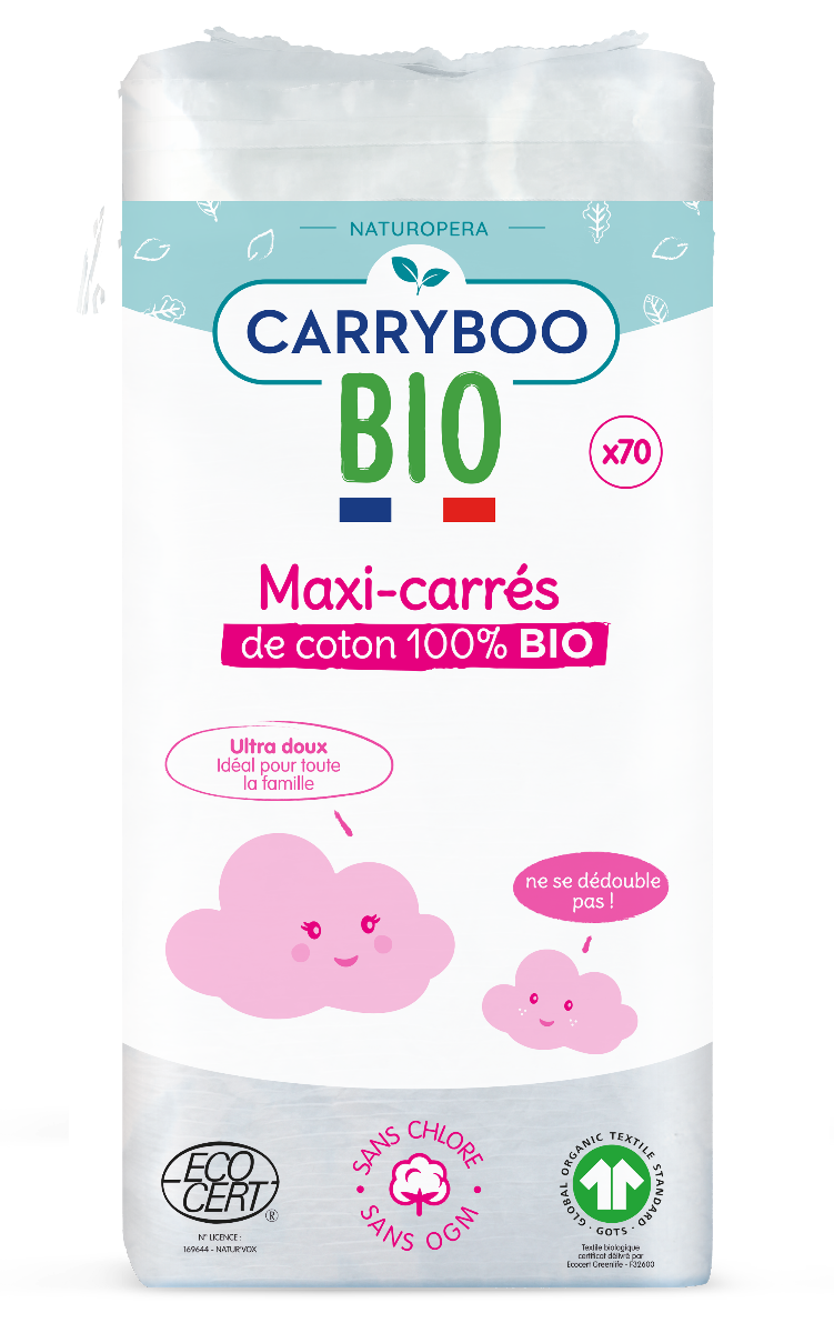 Dischetele din bumbac Carryboo dreptunghiulare sunt ideale pentru pielea sensibila a bebelusilor datorita compozitiei lor din bumbac 100% organic, o fibra naturala, fara clor si fara OMG.