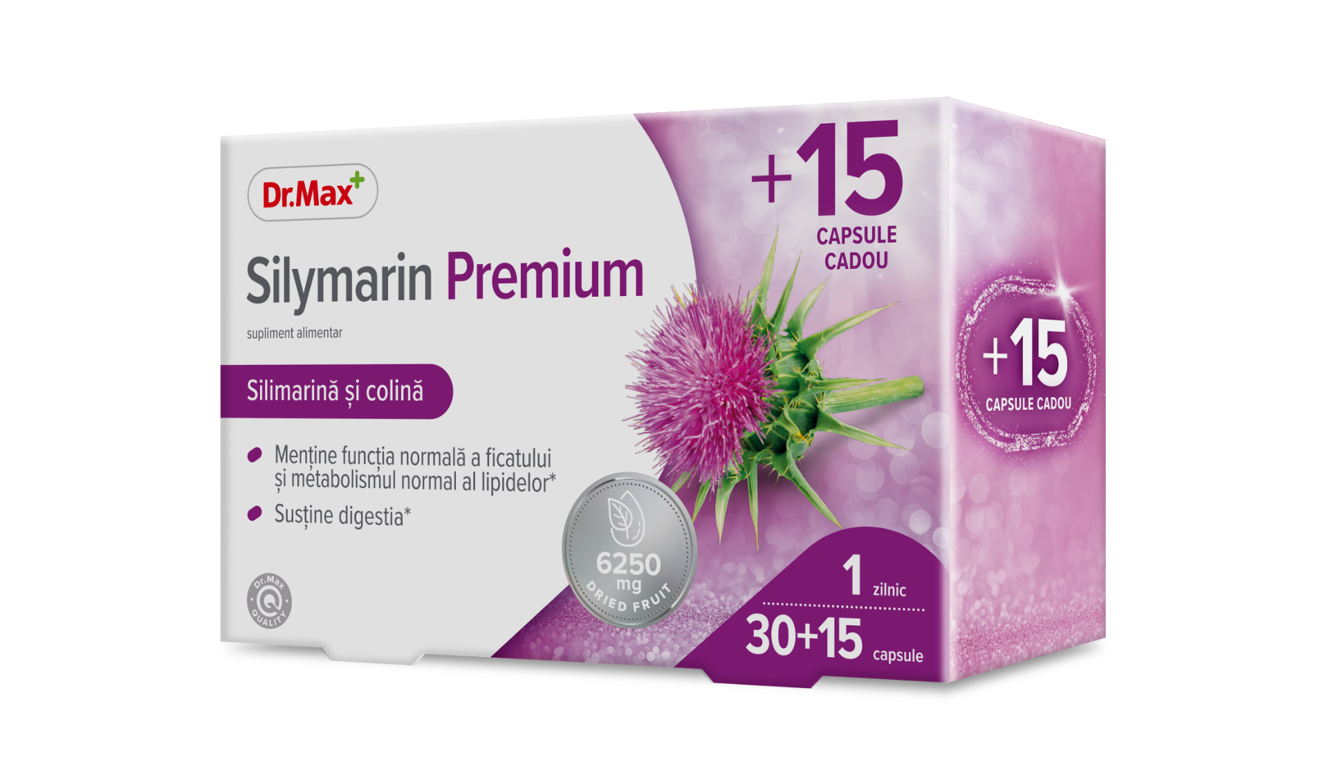 Acest produs Dr.Max Silimarina Premium, 30+15 capsule din categoria Suplimente alimentare se poate comanda online la un pret redus.