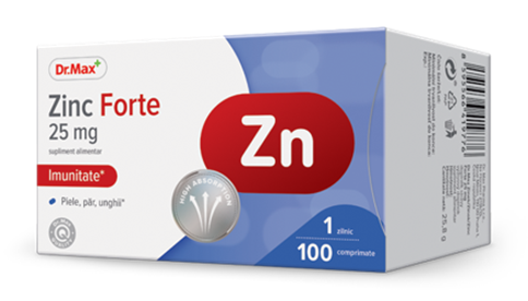 Dr. Max Zinc Forte este un supliment alimentar ce contine o doza mare de zinc sub forma organica de bisglicinat de zinc cu absorbtie ridicata.