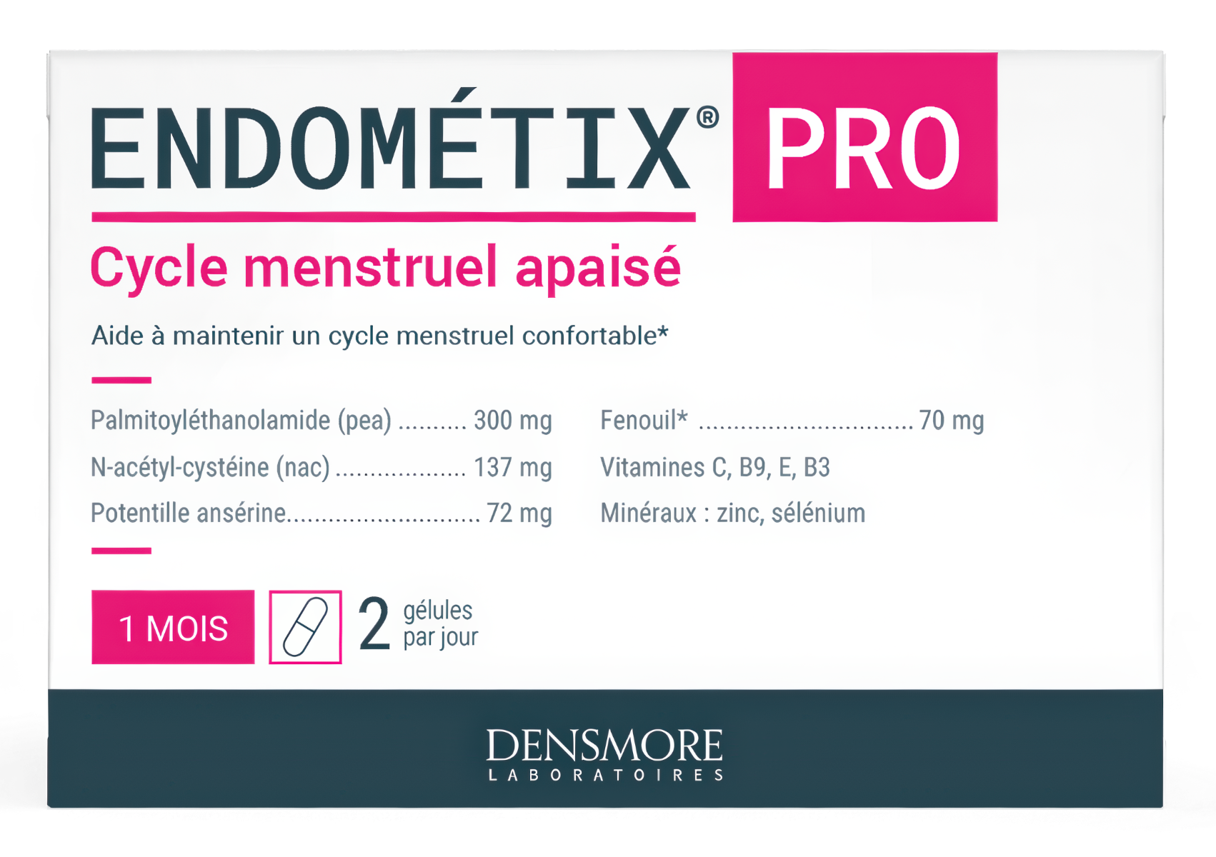 ENDOMETIX® PRO este un supliment alimentar care sprijina femeile pe tot parcursul ciclului lor, datorita ingredientelor sale atent selectate pe baza de Palmitoiletanolamida, N-acetil cisteina, Coada racului, Fenicul, Vitamine si Minerale.