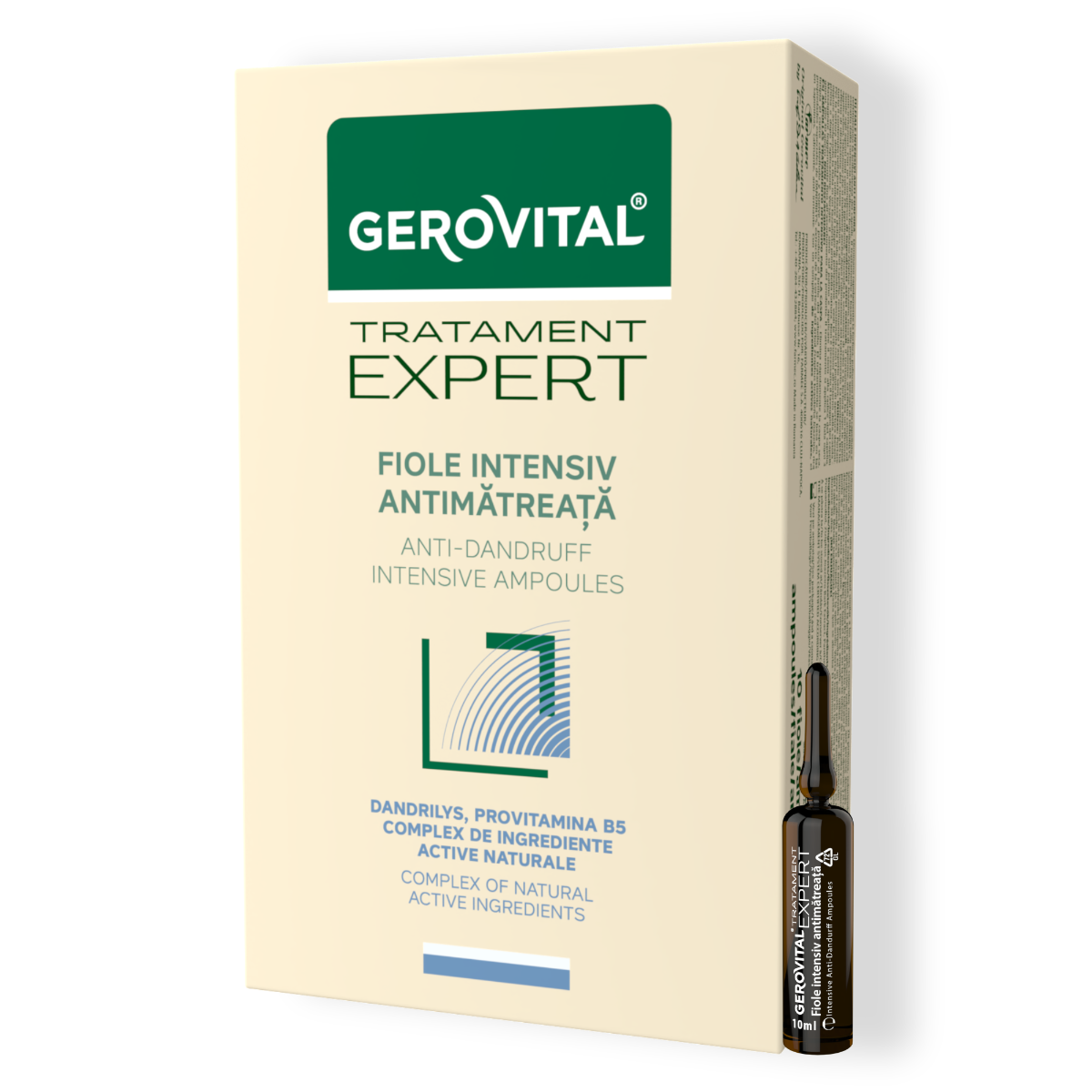 Acest produs Fiole Antimătreață - Tratament Intensiv Pentru Mătreață Uscată Sau Grasă, Gerovital Tratament Expert, 10 Fiole X 10 Ml din categoria Păr se poate comanda online la un pret redus.