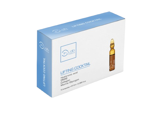 Fiole Cocktail Lifting, InLab Medical – solutie sterila cu acid hialuronic, colagen, DMAE si glicogen marin, un tratament intensiv pentru fermitate, hidratare si imbunatatirea texturii pielii.