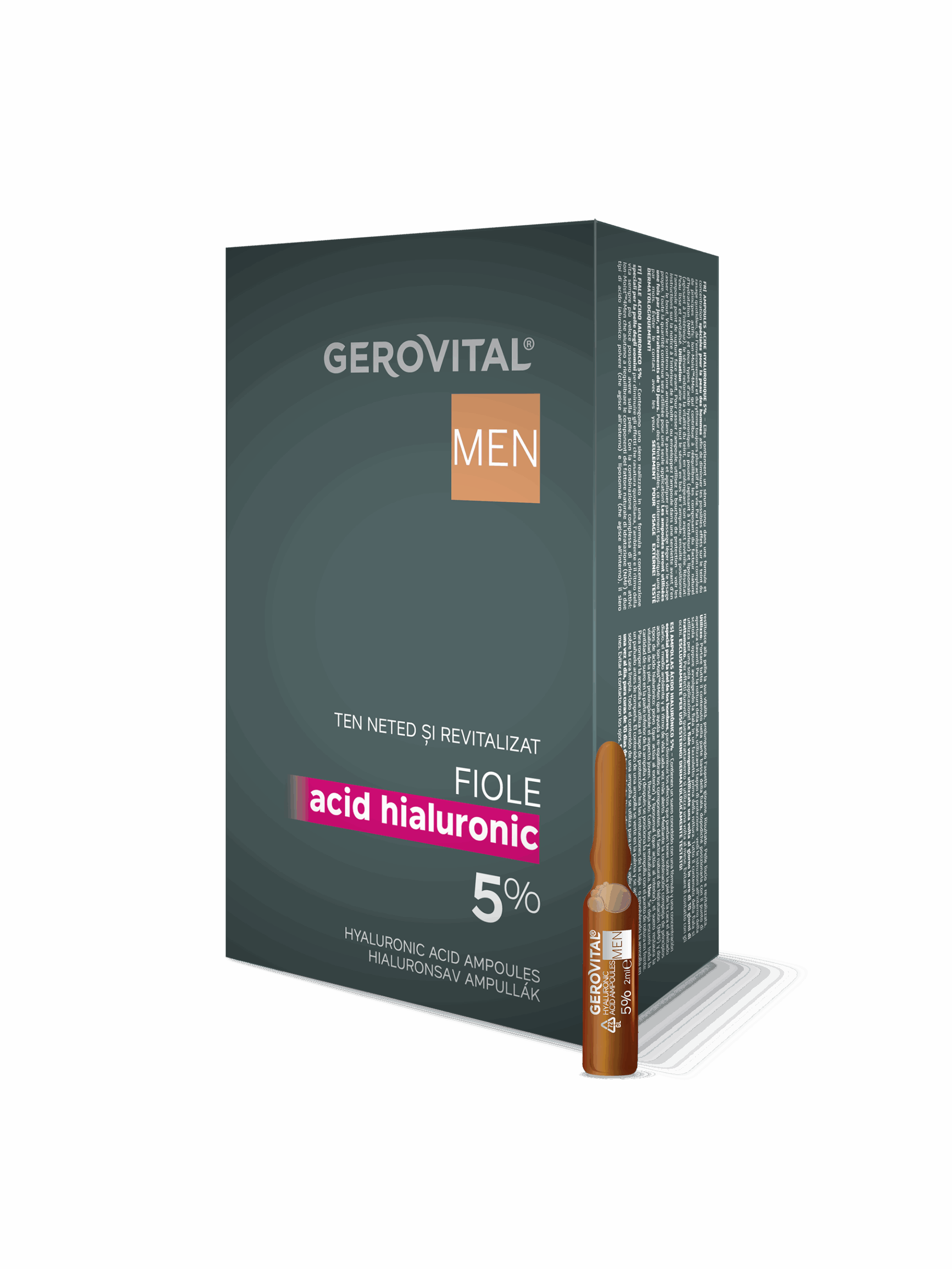 Acest produs Fiole Cu Acid Hialuronic 5% Pentru Bărbați Tratament Intensiv De Hidratare Pentru Un Ten Neted și Revitalizat, Gerovital Men, 10 Fiole X 2 Ml din categoria Ten se poate comanda online la un pret redus.