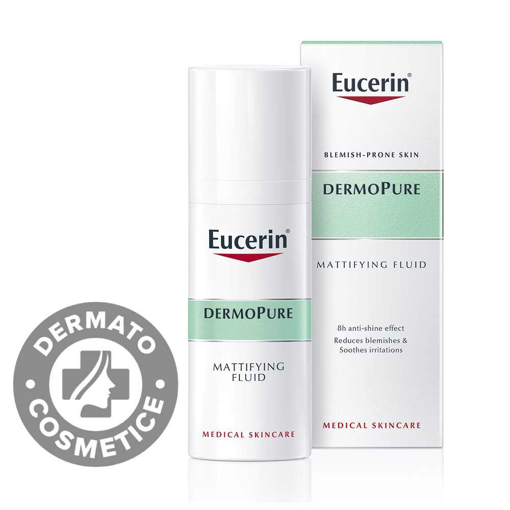 Fluidul matifiant inovator Eucerin DermoPure contracareaza eficient cosurile si punctele negre si ajuta la controlul pielii predispuse la imperfectiuni pe termen lung.