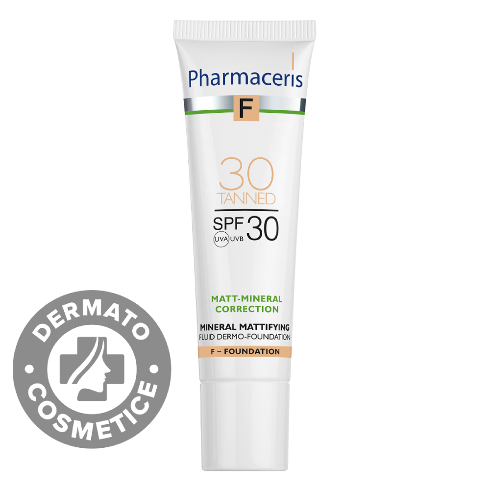 Pharmaceris F Dermo-fluid mineral matifiant SPF30+ TANNED (30) bazat pe o compozitie naturala si pigmenti minerali, asigura un machiaj natural si de lunga durata.