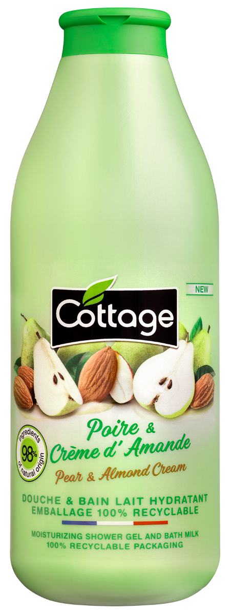 Gelul de dus si laptele de baie Pere si Migdale Cottage curata delicat pielea, avand 98% ingrediente naturale si un parfum fructat-cremos de para si migdale.