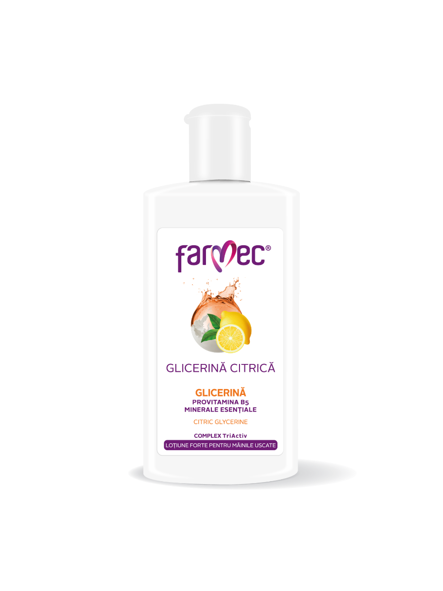 Produsul Glicerină Citrică este adresat persoanelor predispuse la uscarea excesivă a mâinilor, celor care lucrează în condiții severe, unde mâinile sunt supuse agresiunilor fizice și chimice (spălătorii, ateliere auto, șantiere etc). Datorită conţinutului său bogat în principii active cu efect reparator şi de calmare a pielii, loțiunea emoliază și îmbunătățește textura pielii....