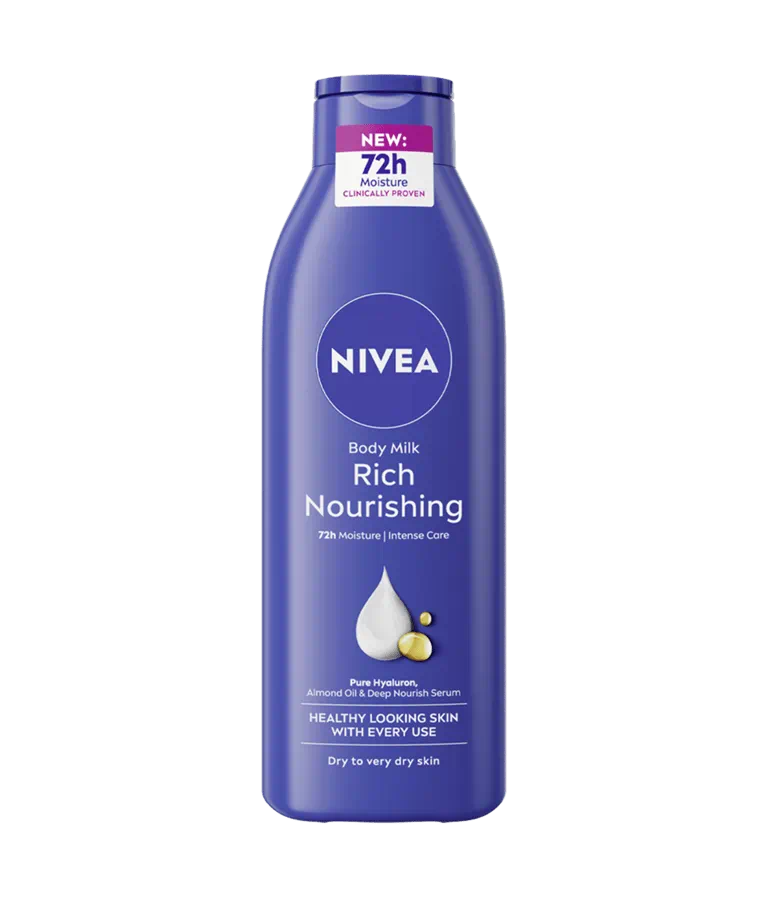 Laptele de corp Rich Nourishing Nivea hidrateaza pielea uscata si foarte uscata.