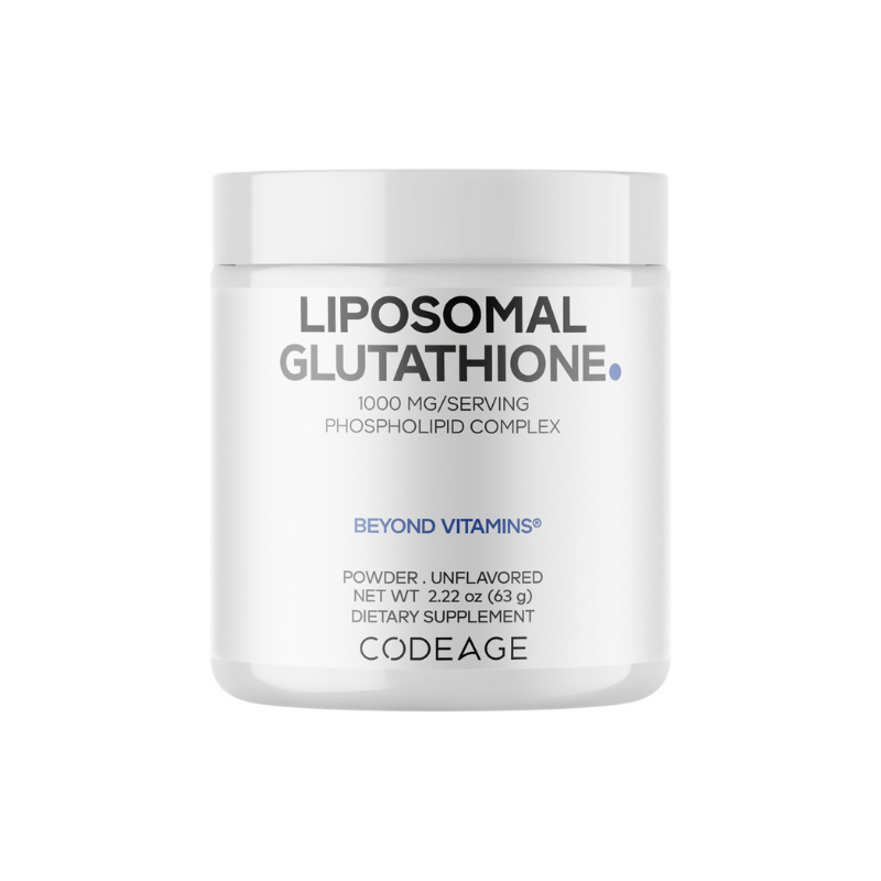 Supliment antioxidant sub forma de pudra cu glutation lipozomal, 1000 mg per portie, pentru sustinerea imunitatii, detoxifierii si sanatatii pielii, CodeAge.