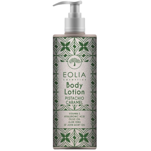 Lotiune de corp cu aroma de fistic si caramel, imbogatita cu ingrediente hidratante, care hraneste, catifeleaza si lasa pielea radianta si fina, Eolia.