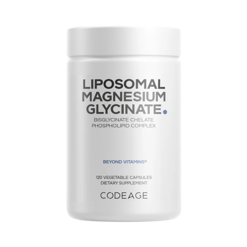 Magneziu glicinat liposomal Codeage ofera suport pentru sistemul nervos, muscular si osos cu absorbtie avansata si formula vegana.