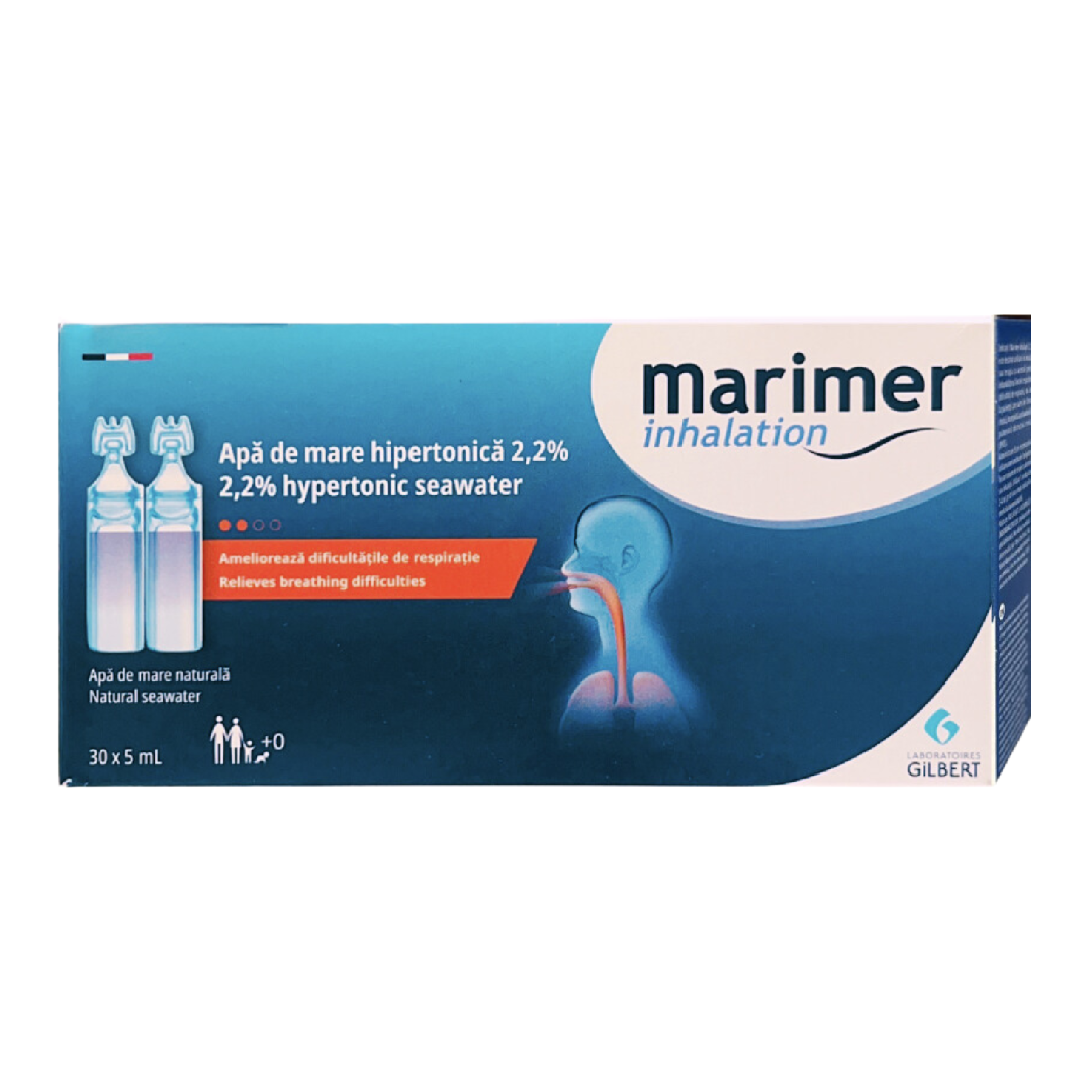 Marimer Inhalatii 2,2% este o solutie sterila de apa de mare hipertonica. Compozitia sa naturala este recomandata sugarilor, copiilor si adultilor pentru a hidrata si calma caile respiratorii in caz de nas infundat, disconfort obstructiv, respiratie suieratoare sau tuse cronica.