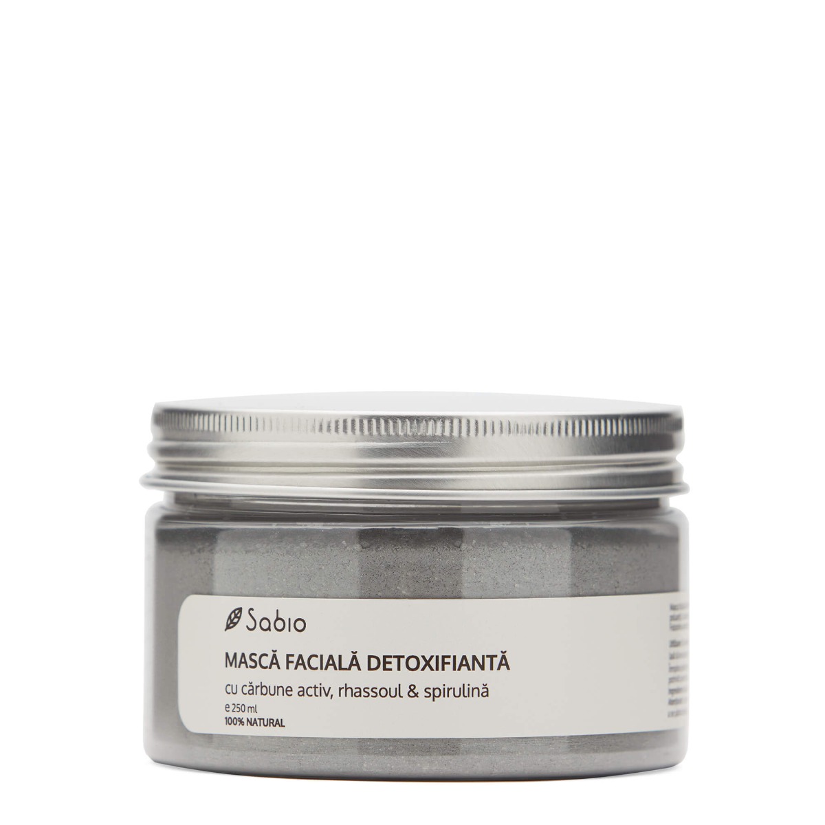 Masca faciala detoxifianta cu carbune activ, rhassoul si spirulina, Sabio – tratament natural purifiant, ce absoarbe excesul de sebum, curata porii in profunzime si reda pielii prospetime si luminozitate.
