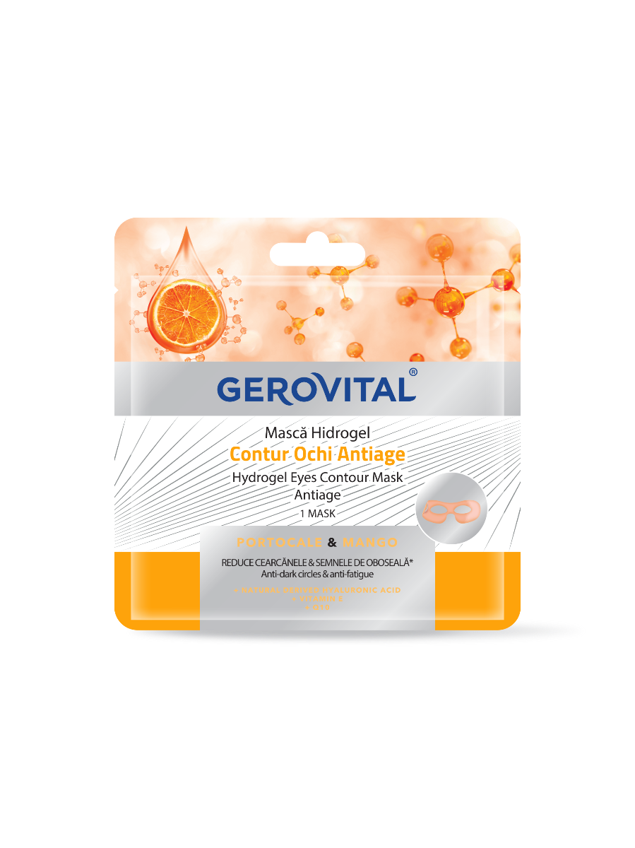 Gerovital Masca Hidrogel Contur Ochi Anti-Age este o mască facială tip șervețel, un produs inovator pentru tratamentul conturului ochilor. Această mască pentru ten este realizată cu tehnologia DermoScience Cryo Effect, un hidrogel special care conține acid hialuronic, cu trei greutăți moleculare diferite, suc de Portocale, Extract de Mango, Vitamina E și Coenzima Q10. Complexul de principii active conferă conturului ochilor o relaxare și tratament de înfrumusețare anti-îmbătrânire. Suportul micro-perfora...