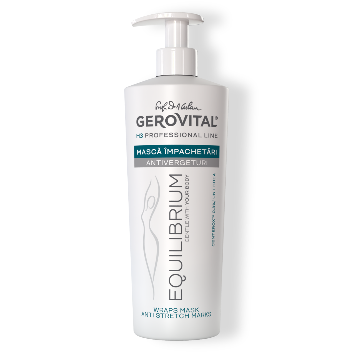Gerovital® H3 Prof. Dr. Ana Aslan Equilibrium Mască Împachetări Antivergeturi este un produs cosmetic wellness şi în acelaşi timp de îngrijire intensivă, special conceput pentru persoanele cu pielea uscată, lipsită de elasticitate, predispusă la apariţia vergeturilor. Masca este bogată în uleiuri şi grăsimi naturale, ce aduc un aport important de substanţe nutritive, restructurante şi regenerante acţionând sinergic cu complexul de principii active în scopul diminuării vergeturilor şi p...