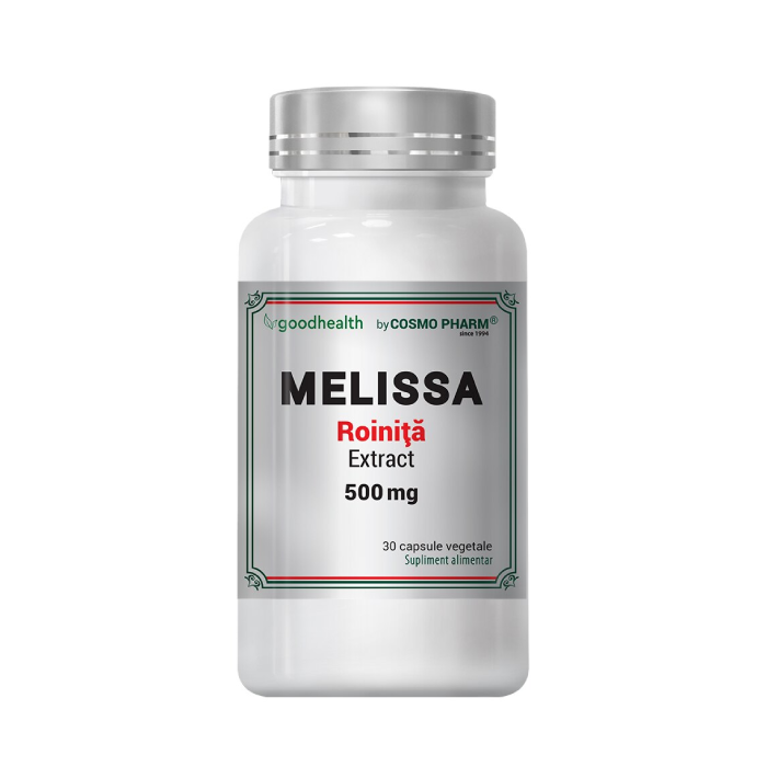 Acest produs Melissa Extract, 500 mg, 30 capsule, Cosmo Pharm din categoria Vitamine si suplimente > Vitamine si suplimente > Neuro > Vitamine si suplimente > Neuro > Stres si somn se poate comanda online la un pret redus.