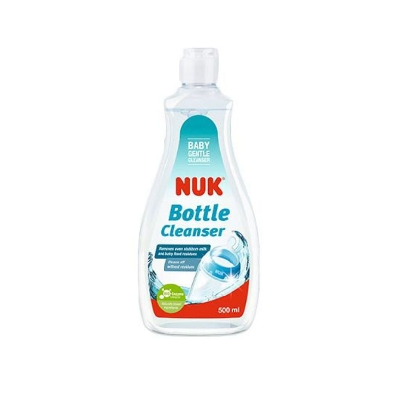 In primele luni de viata, principala hrana a bebelusului este laptele si, ulterior, piureul. Dupa hranire, pot ramane resturi de mancare pe biberoane, tetine, cani, farfurii, ce atrag bacteriile.Solutia pentru curatarea biberoanelor NUK este special creata pentru a curata articolele destinate hranirii bebelusilor. Formula este are la baza ingrediente din natura: anumtite enzime ce inlatura eficient urmele de lapte, piure sau suc. Solutia are o consistenta usoara ce ii permite sa se disperseze rapid. Proteinele din reziduurile alimentare sunt distruse de enzime si inlaturate complet. Solutia pentru curatarea biberoanelor NUK nu contine parfumuri si coloranti. Astfel, puteti curata cu incredere canile si farfuriile copilului, jucariile sau orice ale articole care intra in contact cu gura celui mic.