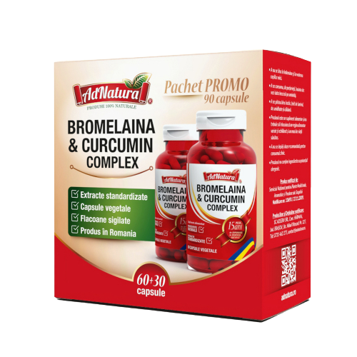 Acest produs Pachet Bromelaina si Curcumin complex, 60+30 capsule, AdNatura din categoria Suplimente alimentare se poate comanda online la un pret redus.