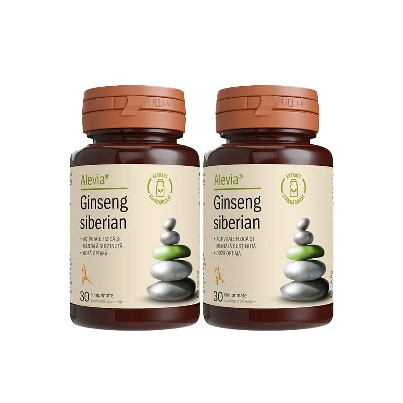 Comprimatele de Ginseng Siberian, de la Alevia, cresc energia si vitalitatea, imbunatatesc activitatea fizica si mentala, reduc stresul si oboseala, incetinesc procesul de imbatranire, dar imbunatatesc si performantele sexuale.Acest pachet promotional contine doua cutii de Alevia Ginseng Siberian a cate 30 de capsule fiecare.