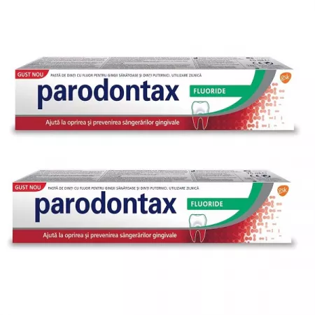 Acest produs Pachet Pasta de dinti Fluoride, 2 x 75ml, Parodontax din categoria Frumusete si ingrijire se poate comanda online la un pret redus.