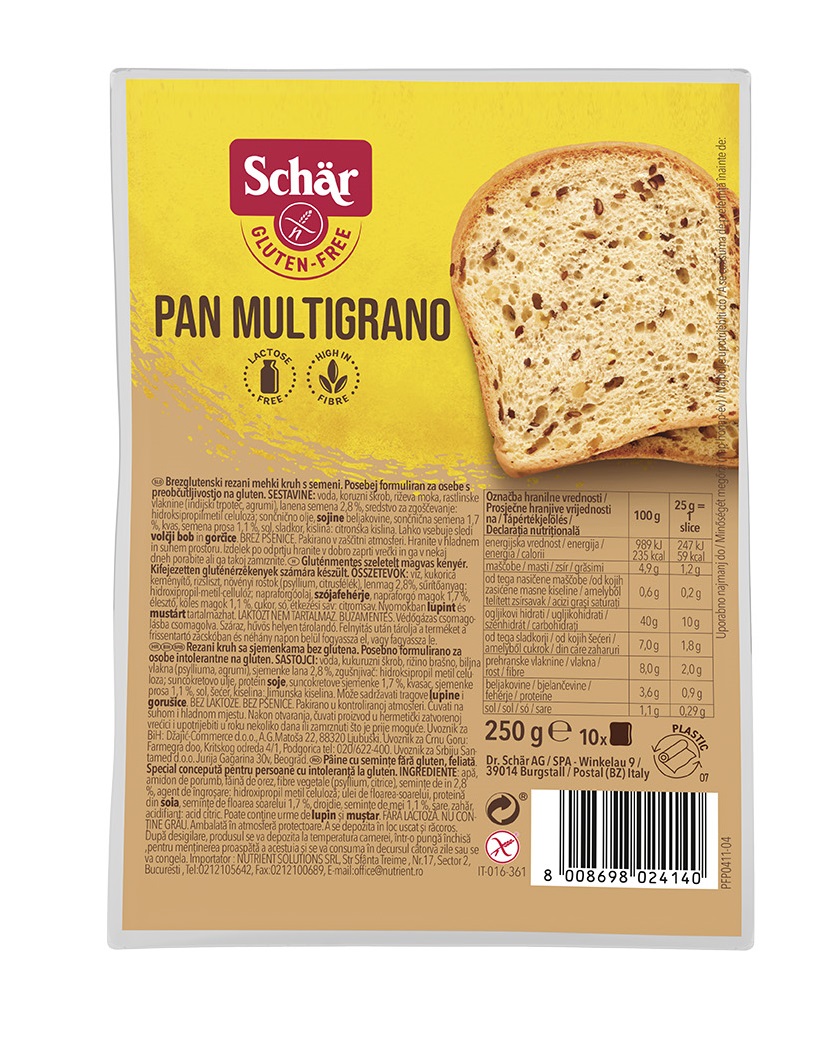 Acest produs Paine feliata cu cereale fara gluten Pan Multigrano, 250g, Schar din categoria Dieta si nutritie se poate comanda online la un pret redus.