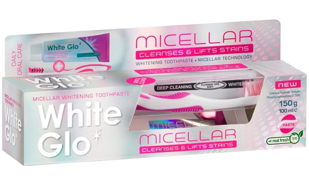 Acest produs Pasta de dinti cu periuta Micellar, 100ml, White Glo din categoria Frumusete si ingrijire se poate comanda online la un pret redus.