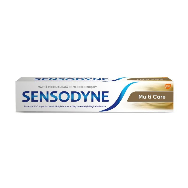 Sensodyne Multi Care este o pasta de dinti ce ofera protectie* impotriva sensibilitatii dentare. In acelasi timp protejeaza impotriva cariilor, ajuta la indepartarea placii bacteriene si la mentinerea sanatatii gingiilor, prin agentul cu actiune antimicrobiana pe care-l contine.