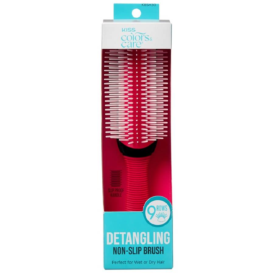 Aceasta perie cu maner anti-alunecare si 9 randuri de peri de nailon descurca parul cu usurinta.