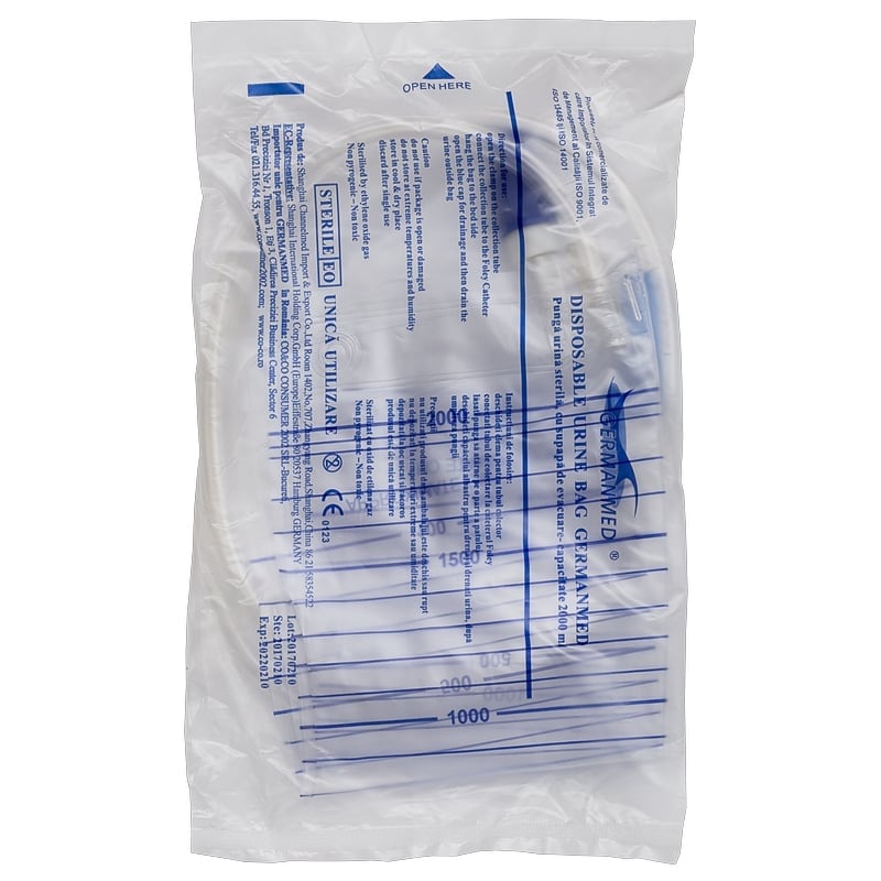 Punga urinara cu valva de scurgere ambalata individual in ambalaj steril steril.