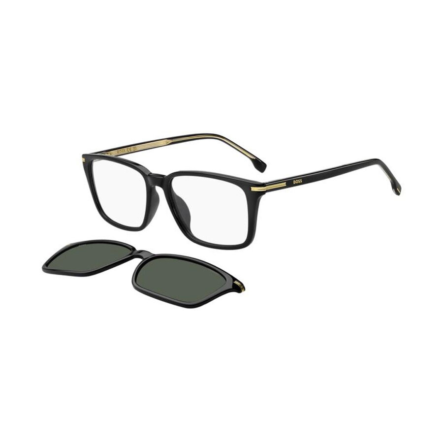 Producator: Boss<br>Model: BOSS 1847/G/C 807<br>Pentru: Barbati<br>Culoare rama: Negru<br>Stil rama: Clip-on<br>Material rama: Plastic<br>Tip rama: Rama completa<br>Latime lentile: 55 mm<br>Lungime brate: 145 mm<br>Punte nazala: 16 mm<br>Inaltime lentile: 40,4 mm<br>Latime rama: 142,1 mm<br>Tip lentila: Culoare uniforma<br>Culoare lentile: Verde