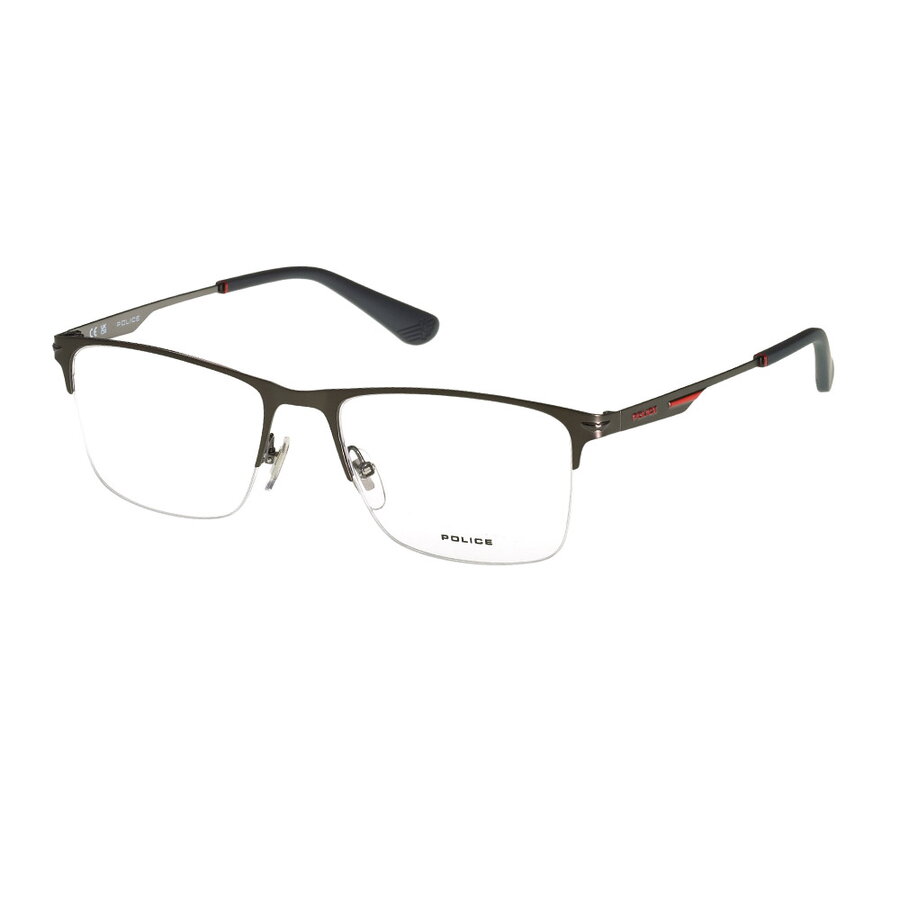 Producator: Police<br>Model: VPLN18 0584<br>Pentru: Barbati<br>Culoare rama: Gri<br>Stil rama: Rectangular<br>Material rama: Plastic<br>Tip rama: Semi rama<br>Latime lentile: 56 mm<br>Lungime brate: 145 mm<br>Punte nazala: 18 mm<br>Inaltime lentile: 41 mm<br>Latime rama: 140 mm